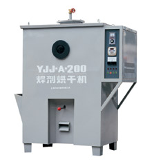 性能和结构 一、利用烘干机内上料机,能自动将焊剂从盛料斗中吸入到烘干机内胆中进行烘干,不需人工装料。 二、烘干机内管状电加热管布局合理,温度均匀,内胆和电加热管均采用不锈钢制造,免除了铁锈对焊剂的污染。 三、电加热管使用寿命长,例:YJJ-A-500型焊剂烘干机内的U型加热管共12条,每根功率4KW。 四、温度自动控制,可任意调节烘烤温度。温度达到预定的要求时,即能自动 恒温,恒温时由数显时间继电器控制。到了恒温设定时间,即自动切断电源。 五、装有窥视孔,可随意观察烘干机内情况。 六、取料方便,要按动出料手把,烘干后的焊剂即从下出料口流出,关了手把即合闸。 七、装有微尘清除装置,在吸料过程中能同时清除焊剂中的微尘收集到除尘器中,保证了焊剂的焊接质量。